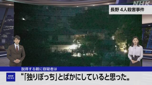 @KaichitKchit父親は頭抱えしゃがみこむ 10分間で4人…事件発生から緊迫の12時間 父親が「自主」するよう説得 容疑者「“ぼっち”とののしられたと思った」 立てこもり事件 長野県中野市 自主って 長野放送はあほなのか